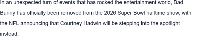 🚨 BREAKING: In a Last-Minute Change, BAD BUNNY Kicked from the Super Bowl – Courtney Hadwin to Dominate the 2026 Halftime Show!
