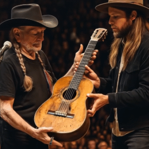 A Father’s Final Gift: Willie Nelson Hands His Beloved Guitar to Son in Tearful Farewell Under the glowing lights of Nashville’s Nissan Stadium