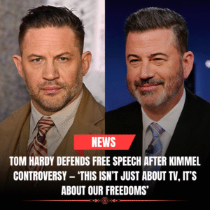 HOLLYWOOD IN FLAMES: Tom Hardy’s Explosive Defense of Jimmy Kimmel Ignites a Nationwide Free Speech Firestorm That Reaches Far Beyond Late-Night Comedy