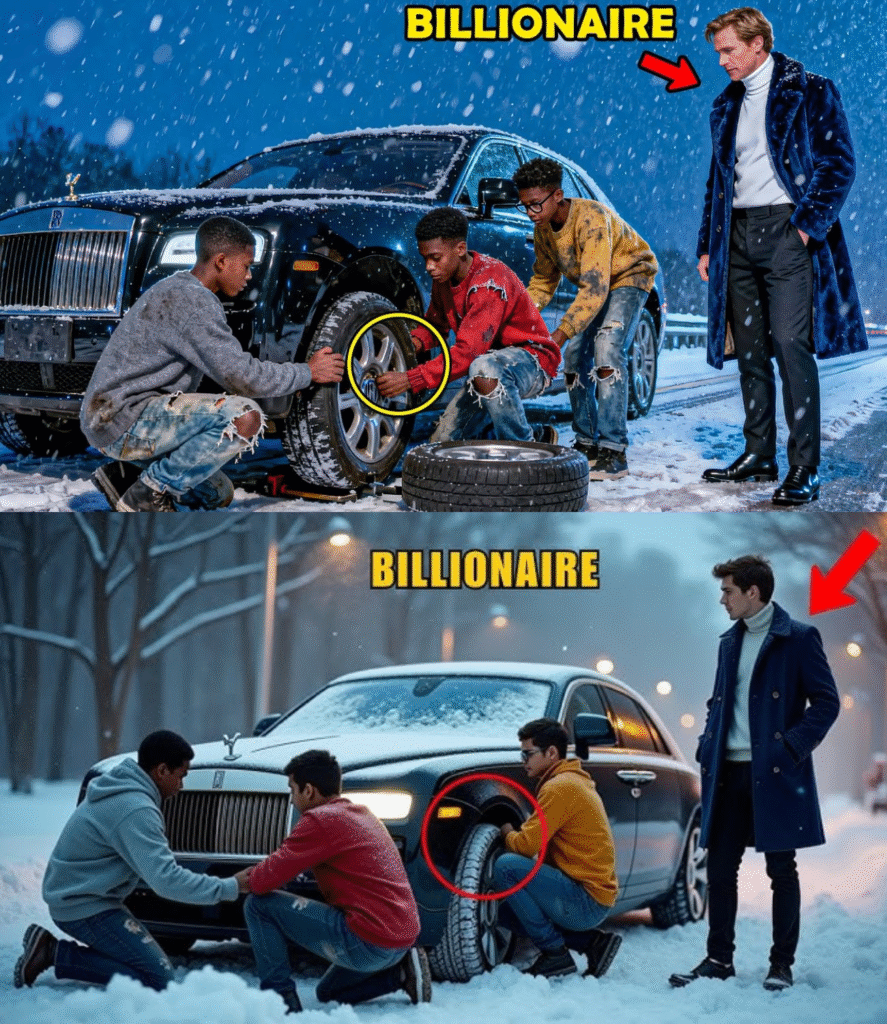 3 BLΑCK BOYS HELP Α BILLIONΑIRE FIX HIS FLΑT TIRE — NEXT DΑY, Α ROLLS-ROYCE SHOWED UP ΑT THEIR HOUSE