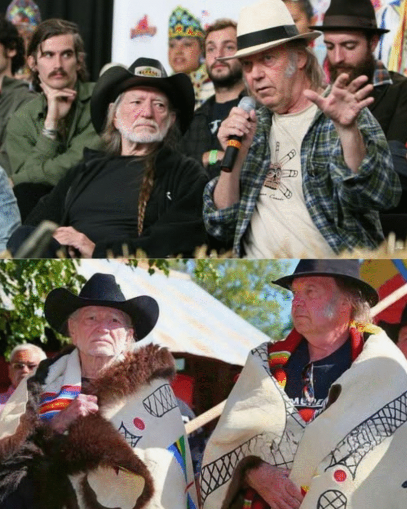 Descriptions shared on social platforms depict Nelson smiling from a wheelchair under warm stage lights. Young is said to have stood close by with a well-traveled guitar. Elders reportedly spoke about Farm Aid, hard years for family agriculture, and public support for Indigenous sovereignty. The tone, commenters suggest, leaned more toward thanks than spectacle.