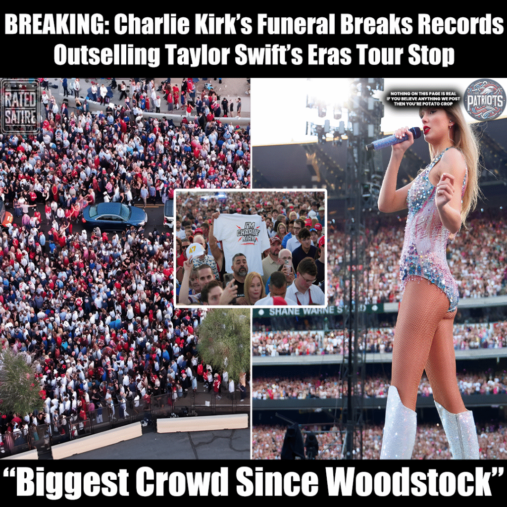 Phoenix, AZ — America has entered uncharted territory: a conservative activist’s funeral has become a stadium-filling, record-shattering cultural event. On Sunday, Charlie Kirk’s funeral in Phoenix drew such an enormous crowd that event statisticians say it not only rivaled, but surpassed Taylor Swift’s Eras Tour concert in the same city earlier this year.