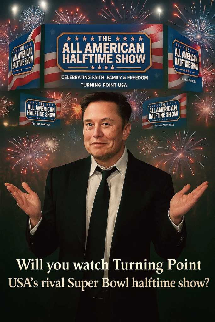 In a move that no one saw coming, Elon Musk, the visionary behind Tesla, SpaceX, and X (formerly Twitter), has officially stepped in as the title sponsor of Turning Point USA’s “The All-American Halftime Show.” The announcement sent shockwaves across the internet, lighting up every corner of social media within minutes of Musk’s post.