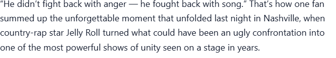 BREAKING NEWS: Jelly Roll took a stand last night that no one saw coming—but no one will ever forget. Midway through his set in Nashville, as a handful of anti-American chants began near the front of the stage…