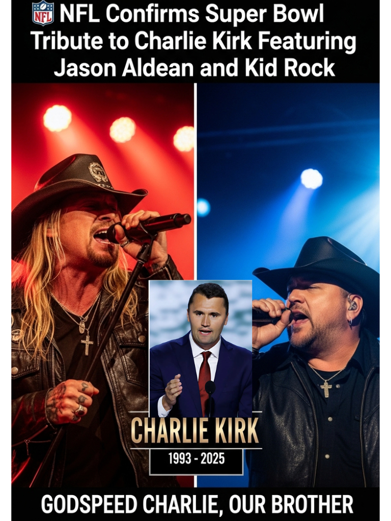 In a move that has already sparked nationwide attention, the National Football League (NFL) has confirmed that this year’s Super Bowl will include a special tribute to honor Charlie Kirk, the conservative activist and founder of Turning Point USA, who passed away unexpectedly just weeks before the season’s biggest night. The tribute, which will feature live performances by country star Jason Aldean and rock legend Kid Rock, is being framed as a celebration of Kirk’s influence on American culture, youth engagement, and political activism.