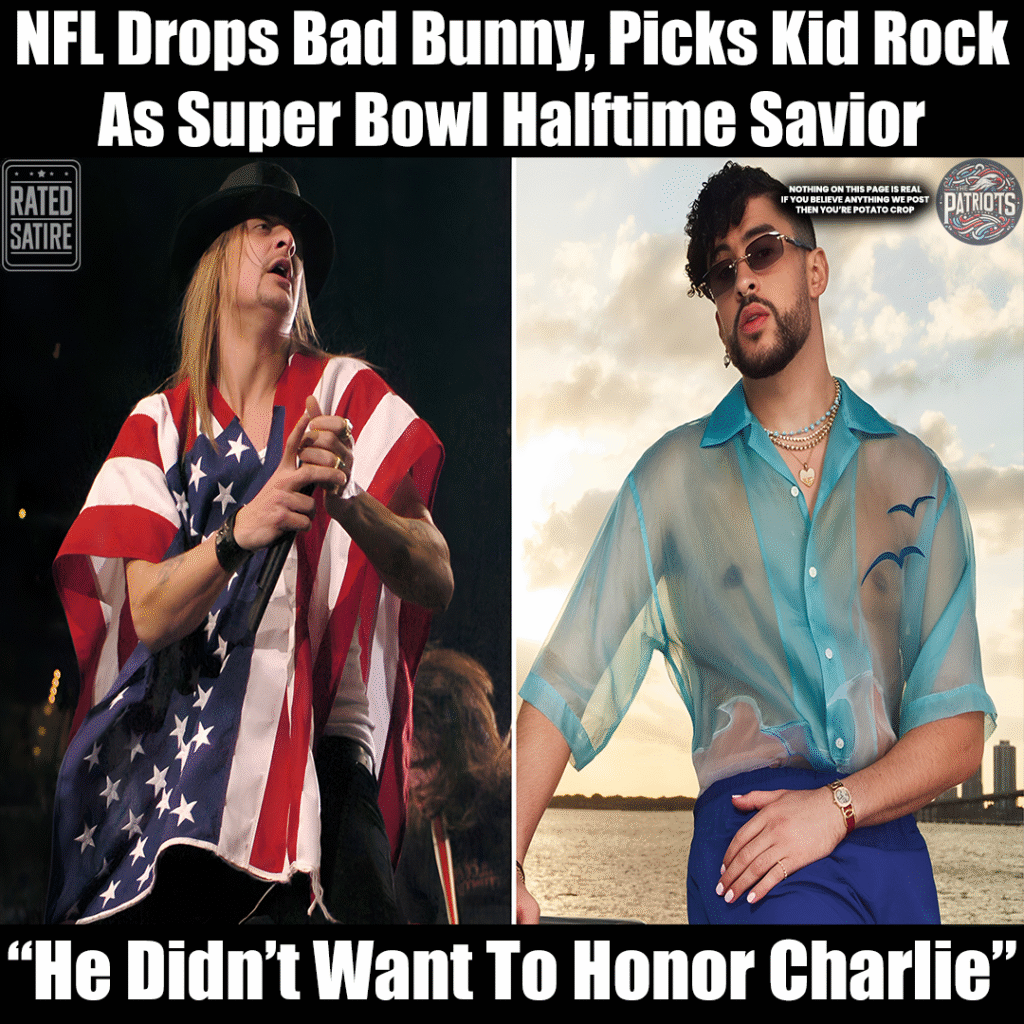 In a twist that feels less like a production choice and more like a scene from Idiocracy 2: Football Boogaloo, the NFL has announced it is scrapping Puerto Rican superstar Bad Bunny as its Super Bowl halftime headliner. His replacement? None other than Kid Rock, America’s self-appointed minister of beer, denim, and questionable sound systems.