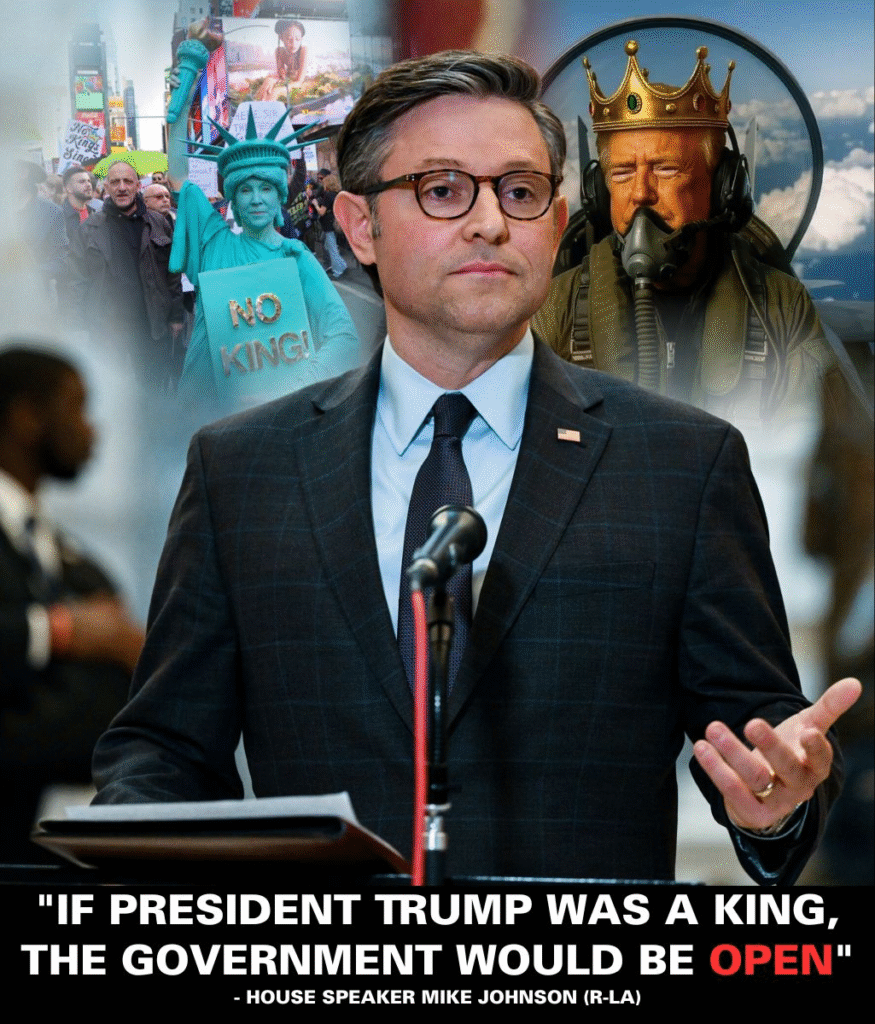 His words landed like a thunderclap in the corridors of political media. Within minutes, clips of the moment began circulating online, amassing millions of views under hashtags like #NoKingsIrony and #MikeJohnsonSpeech. Commentators on both sides of the aisle were quick to weigh in — some calling his remarks a bold defense of populism, others accusing him of deflecting from broader issues surrounding Trump’s ongoing controversies.