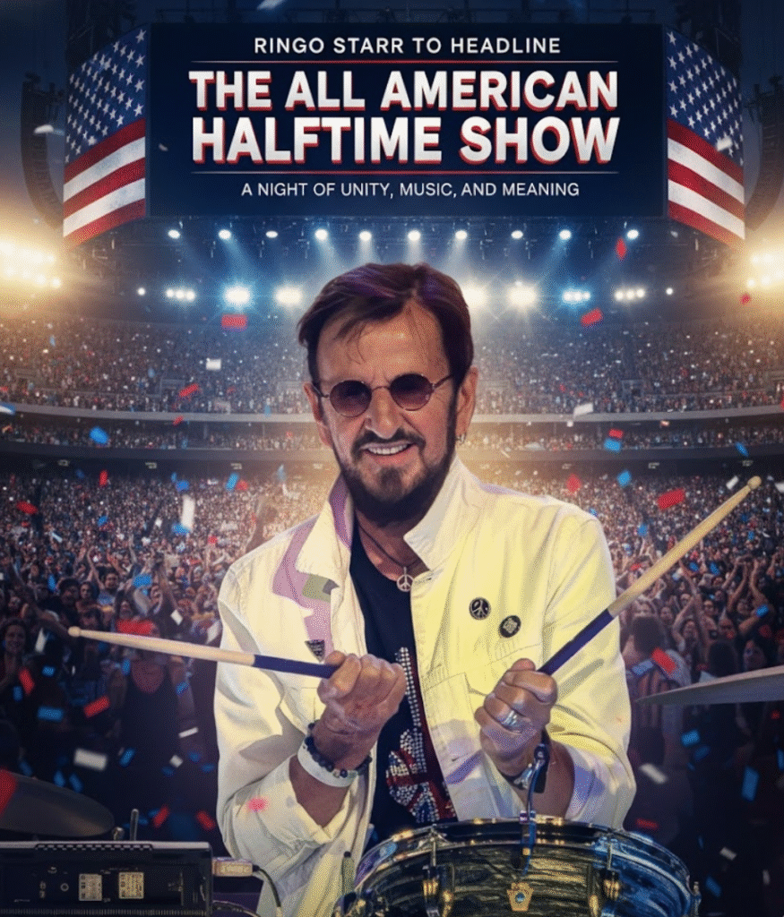 Under the blaze of stadium lights and a sky painted red, white, and blue, Ringo Starr is preparing to take the stage for one of the most anticipated live events of the decade — The All American Halftime Show. Presented by Turning Point USA as a bold, faith-filled alternative to the traditional Super Bowl spectacle, this historic performance aims to remind a divided nation of what still unites it: faith, family, and freedom.