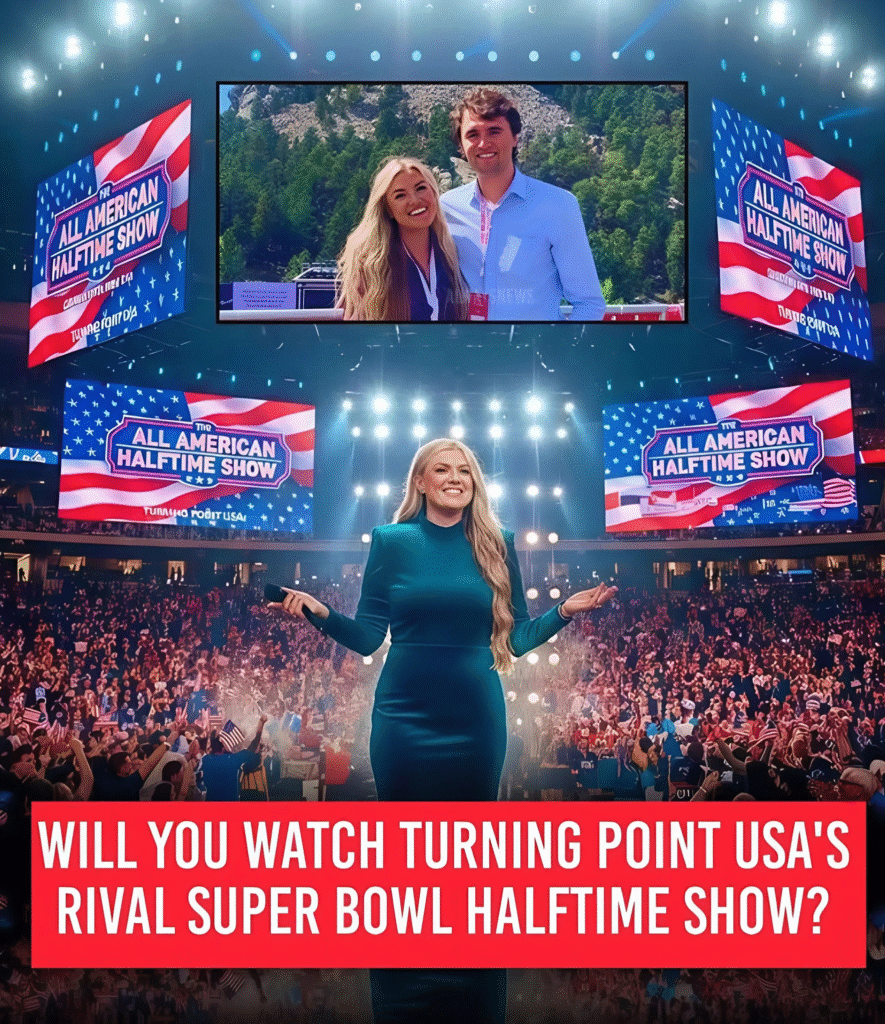 In a broadcast charged with emotion and weighted by legacy, Turning Point USA has announced its most audacious cultural maneuver to date. Speaking on the organization’s flagship program, “The Charlie Kirk Show,” Erika Kirk—widow of the movement’s late founder, Charlie Kirk—revealed plans for “The All American Halftime Show,” a direct, faith-driven alternative set to air concurrently with the Super Bowl 60 halftime show.